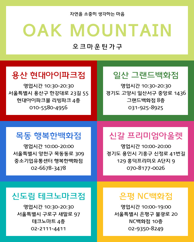 오크마운틴가구 직영점 제품 및 견적상담 안내
